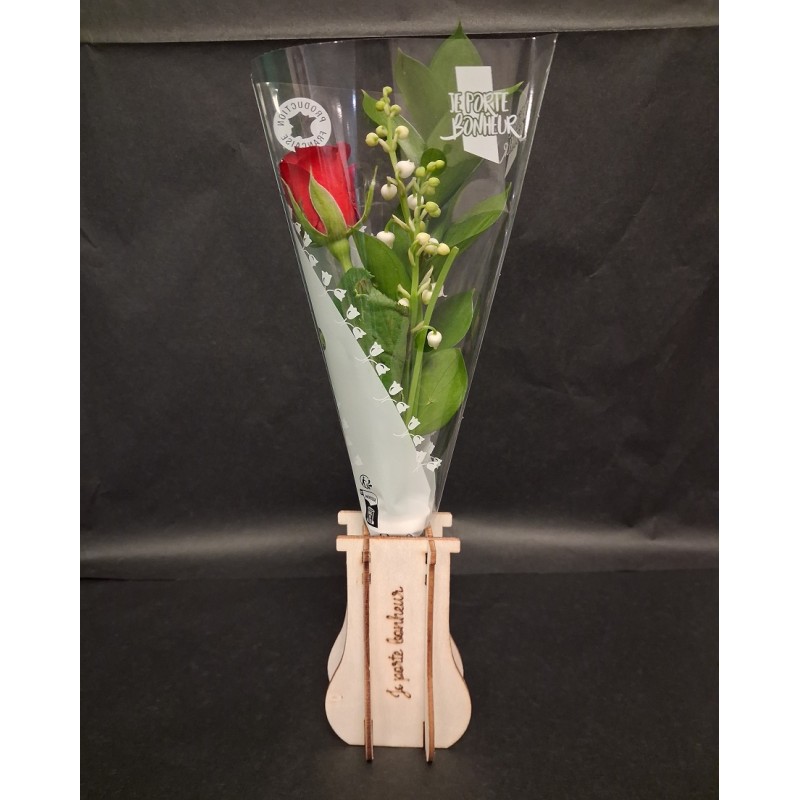 MUGUET DANS UN MINI VASE BOIS COMPOSE DE 3 BRINS + 1 FEUILLE + 1 FLEUR