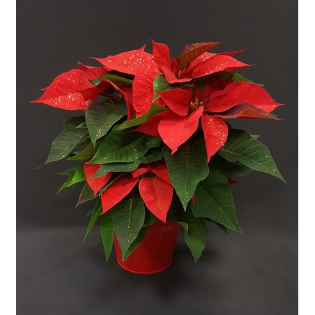 POINSETTIA PAILLETTE DIAMETRE 13 CM AVEC CACHE POT ZINC PHOTO NON CONTRACTUELLE