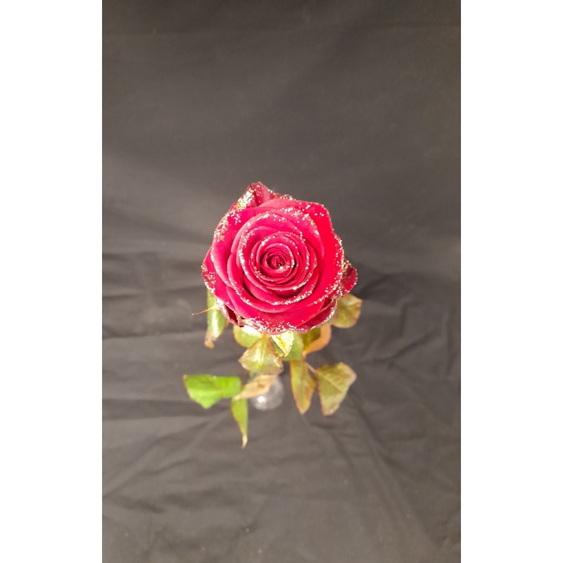 ROSE PIECE ROUGE 70 CM PAILLETEE OR OU ARGENT