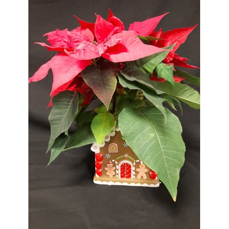 NOEL POINSETTIA POT DE 13 CM ET CACHE POT CERAMIQUE PAIN D'EPICE