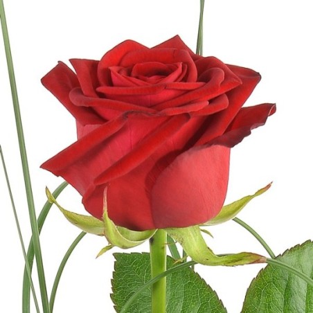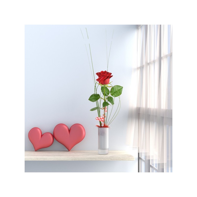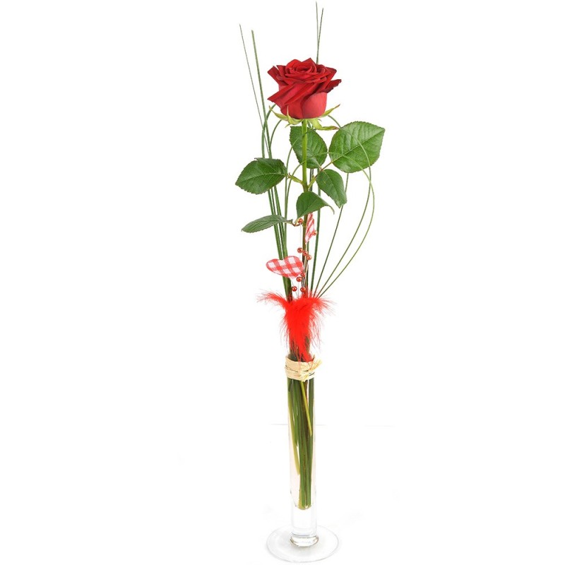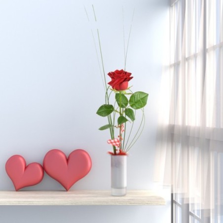 Une seule et unique rose rouge dans son contenant. Le contenant peut varier en fonction de la disponibilité du fleuriste en charge de votre commande.