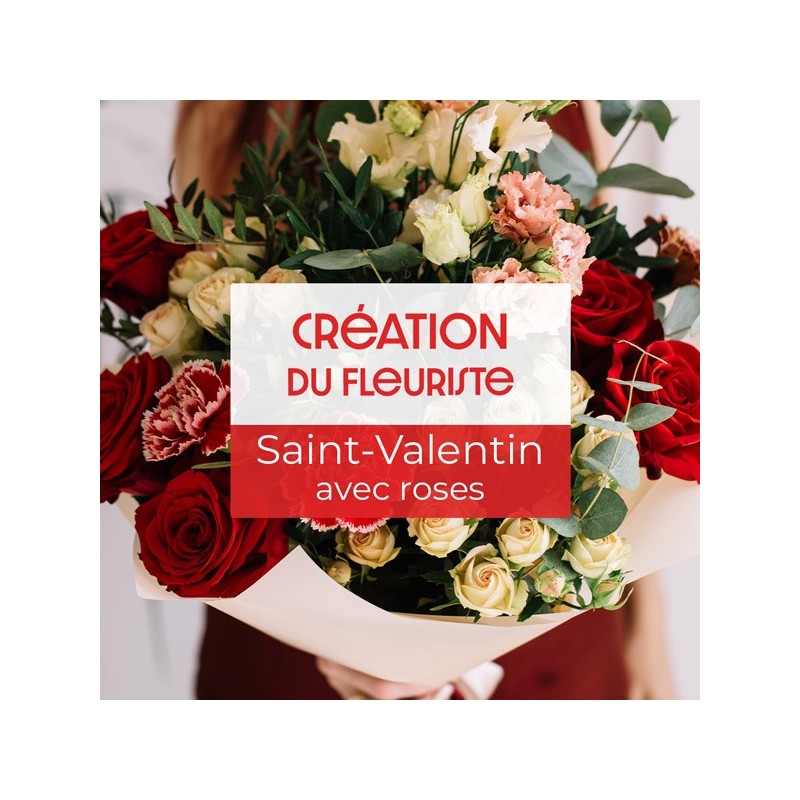 Votre artisan fleuriste réalisera une création spéciale Saint-Valentin avec des roses, en fonction de la touche artistique qui lui est propre, de la tendance du moment, et des fleurs à sa disposition selon la saison. Le visuel présenté est non contractuel.