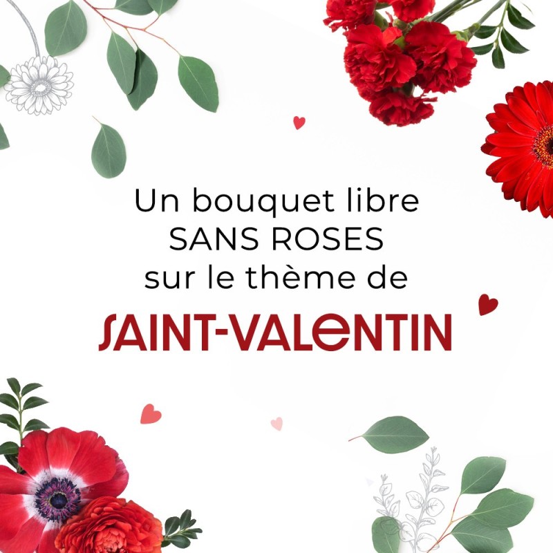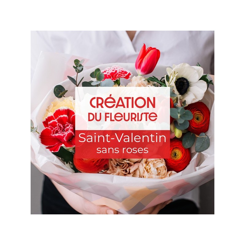 Votre artisan fleuriste réalisera une création spéciale Saint-Valentin sans roses, en fonction de la touche artistique qui lui est propre, de la tendance du moment, et des fleurs à sa disposition selon la saison. Le visuel présenté est non contractuel.