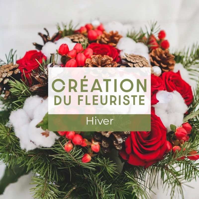 Votre artisan fleuriste réalisera une création hivernale en fonction de la touche artistique qui lui est propre, de la tendance du moment, et des fleurs à sa disposition selon la saison. Le visuel présenté est non contractuel.