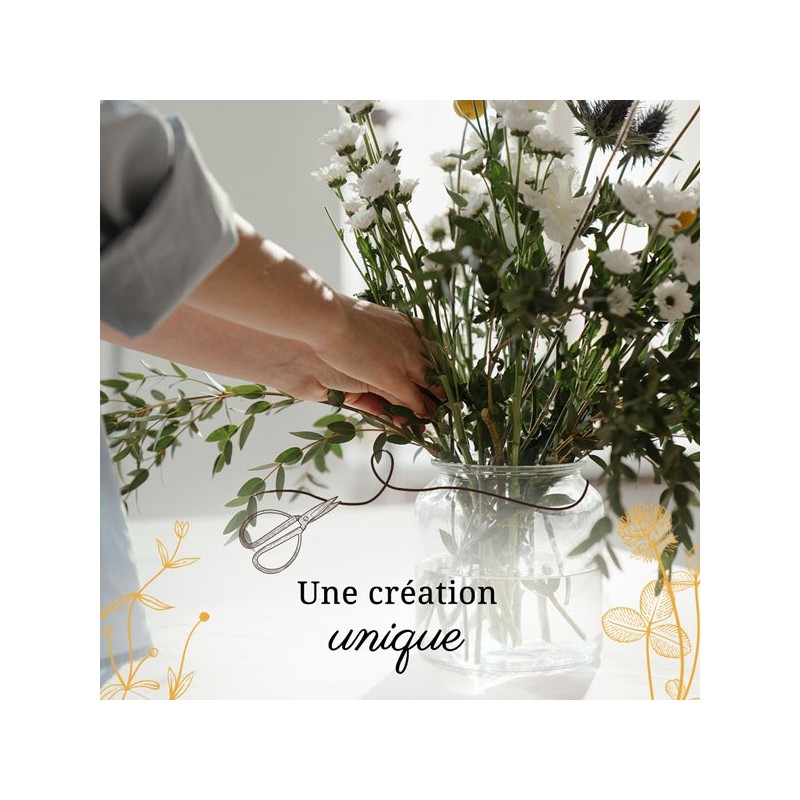 en fonction de la touche artistique qui lui est propre, de la tendance du moment, et des fleurs à sa disposition selon la saison. Le visuel présenté est non contractuel.