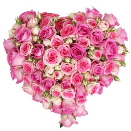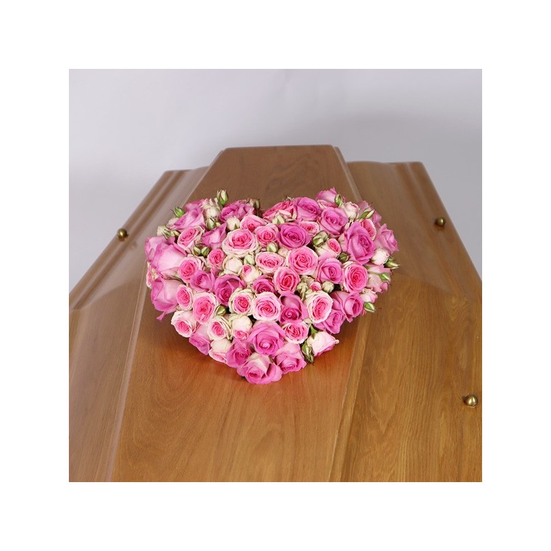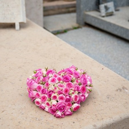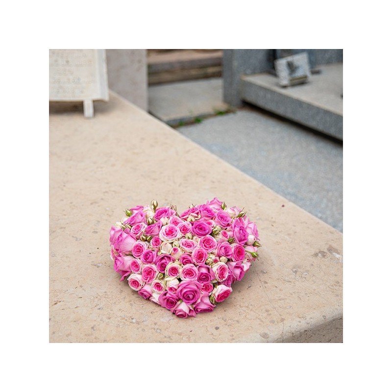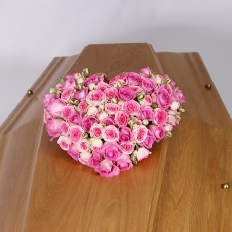 Cœur de deuil composé de roses roses.