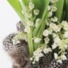 Composition de muguet accompagné d'objets décoratifs et de ses plumes décoratives. Les objets décoratifs ainsi que le contenant varient en fonction...