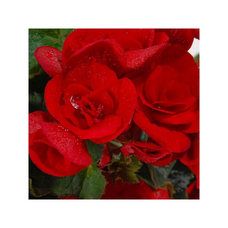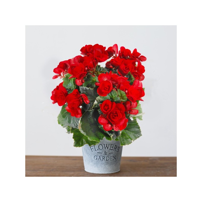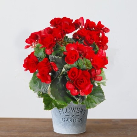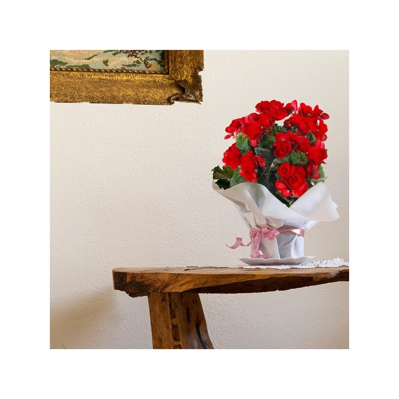 Bégonia rouge dans son pot. Le contenant peut varier en fonction des disponibilités du fleuriste en charge de votre commande.