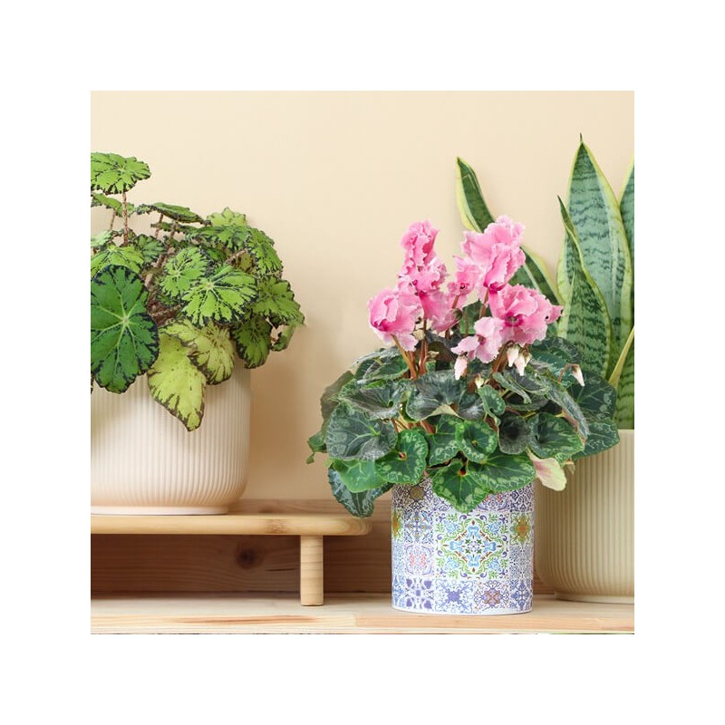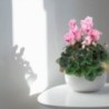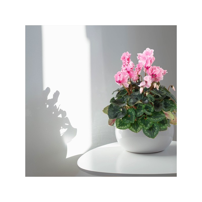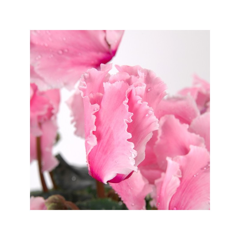 Cyclamen rose dans son pot. Le contenant peut varier en fonction de la disponibilité du fleuriste en charge de votre commande.