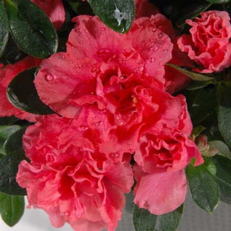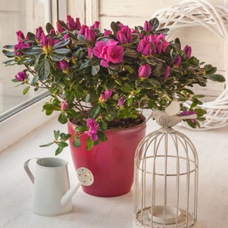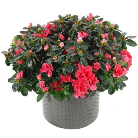 Azalée rose dans son pot. Le contenant peut varier en fonction des disponibilités du fleuriste en charge de votre commande.
